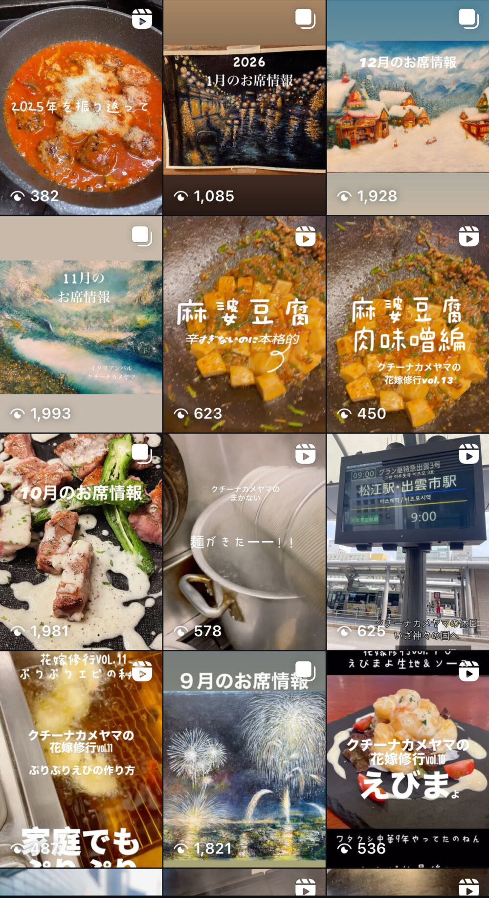 料理のリール動画が300〜500再生くらいなのに対して、お席情報は安定して1000表示以上されています。